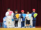 1年生の劇「くじらぐも」では、一人一人がはっきりとした大きな声でセリフが言えました。地域の方への感謝の言葉もあり、すばらしい発表でした。たいへんかわいい姿、成長した姿を見せてくれました。