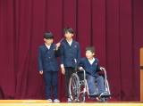 期待で胸を膨らませた元気いっぱいの1年生4名が、6年生のお兄さんお姉さんと手をつないで会場へ入場してきました。