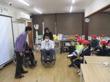 障害をもった美濃部さんと谷口さんがどのように日常生活をされているかを見せていただいたり、障害とは医学モデルと社会モデルがあり、社会モデルの障害がなくなることがみんながくらしやすいバリアフリーの社会であることを教えていただいたりしました。そして、寸劇を通じてどのように接していくべきかを学びました。学んだことをもとに、これからどのように障害をもった方々と接していくかを考えていきます。