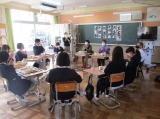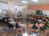 3校時に下学年、4校時には上学年の図書ボランティアの11名の方々によるお話会がありました。紙芝居や大型絵本など工夫をしていただき、子どもたちは楽しいお話の世界に浸りました。お話会の後、全学年図書ボランティアの方々を囲んで給食を食べました。昔の給食の話をしていただいたり、子どもの頃の話をしていただいたりしました。