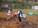 紅葉が美しい伊香具小学校の校庭ですが、通学路の一部やなかよし広場は落ち葉のじゅうたんになっています。連日校務員さんにお世話になっています。この日のそうじ時間に、「県下一斉清掃の日」と連動して運動場や学校周辺の落ち葉を集めるクリーン活動を実施しました。6年生と1年生、5年生と3年生、4年生と2年生がペアになって活動しました。みんな一生懸命に集めてくれたので、運動場や広場もずいぶんときれいになり、たい肥場には山のように落ち葉が集まりました。子どもたちが集めてくれた落ち葉は、腐葉土にして来年度の花壇やプランターの土に混ぜて利用していきます。自然に恵まれた本校のSDGsの取組です。