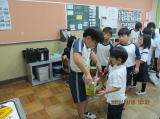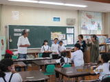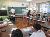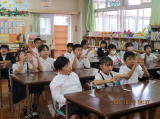 この日は1年生がALTの先生との初めての英語の学習をしました。先生のネイティブスピーチにちょっとドキドキしながらも、自分の好きなものを英語で発表できました。また、昨日の良いお天気のもと、4年生が観察のためにヘチマの種をポットに植えました。先生から植えるコツを教えていただき、種に少し工夫を施して植えました。大きく育つのが楽しみです。