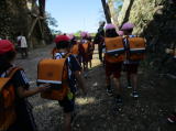 1日目午前中の「もりもり探検」では、森林の様子や生き物を観察しながら山林を歩きました。子どもたちだけで、森林の空気・木々・水等についてのミッションを解決しながら山を登りました。到着した渓流では、水の生まれてくるところの観察や水の冷たさを体感しました。帰りはやまのこ指導員の先生と一緒に生き物の観察をしたり、森林の働きについて教えてもらったりしました。
