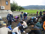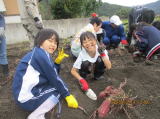 伊香具子どもの活動支援会議の皆様のご厚意で、この日の10時からよっといデー「いもほり大会」が、西山の畑で実施されました。地域の方の畑をお借りして支援委員会の方が子どもたちのために丹精込めて育ててくださったサツマイモを、参加した子どもたちみんなで楽しく掘りました。立派なサツマイモがごろごろと出てきて、子どもたちは大喜びでした。今年は、掘ったサツマイモで焼き芋もつくってくださいました。保護者の方も参加してくださり、にぎやかで楽しいひと時を過ごすことができました。