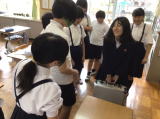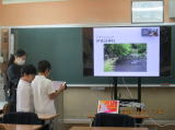 この日は午後、地域の川に出かけて水生生物調査を行う予定でしたが、昨日からの雨による増水の心配があったため中止し、代わりに講師の先生を学校に招き、出前授業をしていただきました。たくさんの種類の水生生物を取ってきてくださり、子どもたちは大喜びで興味深く観察をし、熱心に授業を受けていました。