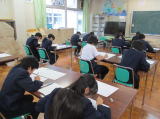 この日は全校5校時までとし、放課後に今年度の漢字検定試験を行いました。本校では、国語力の基礎の一つ、漢字力の向上を目指して、希望する児童に対して学校を会場にして行っています。